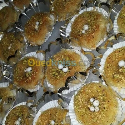 slm je propose mes gâteaux (مقروط،عرايش،شراك ،كعيكعات ،بقلاوة،و et gâteaux sec .......) et les salés pour vos occasions fiançailles fête mariage et ave
