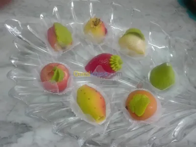 Gâteaux sur commande pour tous vos événements - Fruits aux amandes - Macarons au amandes - Gâteau Algérois traditionnel : tcharak areyen, mesakar 3erayach, mkhabez, dziriyet, mekro