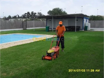 Bonjour; On fait toute les travaux de jardinage avec une qualité et prix extraordinaires . 1-nettoyage des jardin 2-pose gazon 3-etreinte des jardin 3-rosage automatique 4-pose
