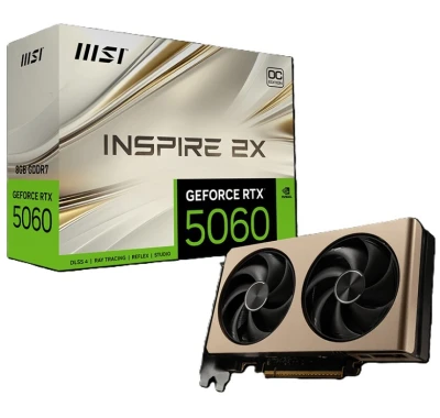 MSI GeForce RTX 5060 INPIRE 2X OC Edition – Carte Graphique Gaming Caractéristiques Principales ✅ Chipset Graphique • NVIDIA GeForce RTX 5060 • Architecture : Ada Lovelace (dernièr