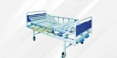 Caractéristiques : • Structure en tube d’acier rectangulaire 30*60mm. 04 sections • Système à 2 manivelles • 6 Barrières latérales rabattables en aluminium • Têtière et pied