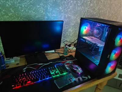 Cpu: ryzen 5500 box MB: msi b550m provdh Gpu: rx6700xt xfx Ram: 2x8 3200mhz Ssd 256gb 1to hdd Psu:800w 80+ bronze Case: Raidmax i610 wood ARGB
