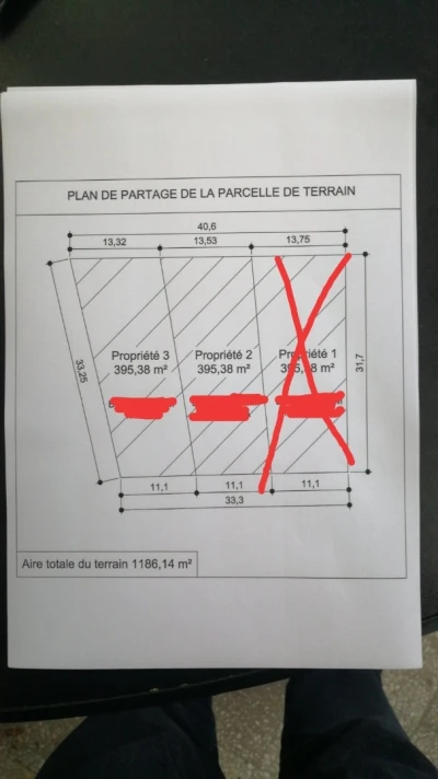 sntr ali amrane vend terrain avec acte dans l'indivise sup 800m² une façade de 11m sur 70m , bien situé ttes les commodités , eau gaz electricité prix 10 millions le m² fixe .svp curie
