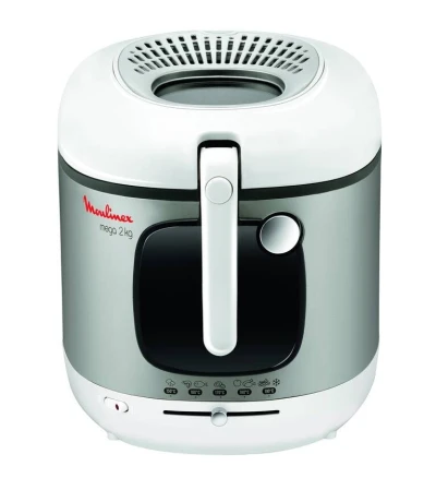 Moulinex Friteuse à huile, Cuve 3 L, Revêtement antiadhésif, Thermostat, Voyant lumineux, Tamis filtrant breveté, Filtre charbon, Mega AM480070, Blanc / Silver