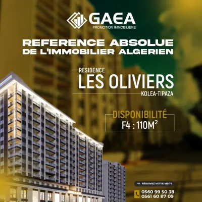 🌟 DESCRIPTIF OPTIMISÉ POUR RÉSEAUX SOCIAUX 🌟 🏆 GAEA PROMOTION - RÉFÉRENCE ABSOLUE DE L'IMMOBILIER ALGÉRIEN Découvrez la Résidence Les Oliviers à Koléa-Tipaza, un projet d