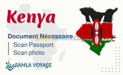 Visa Kenya. Visa touristique 16.000,00 DZD Document nécessaire : 1. Scan Passeport (Valide au moins 6 mois à partir de la date d'arrivée). 2. Scan Photos Récentes fond blanc. NB
