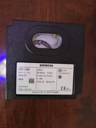 Coffret de sécurité et de gestion de flamme Siemens type LFL1 322 - Préventilation 36 s - Préallumage 4 s - Ts 2 s - 2 allures pour brûleur de chaudière