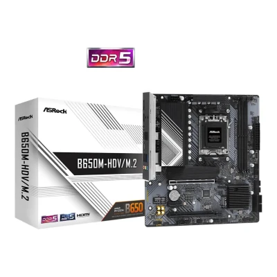 ASROCK B650M-HDV/M.2 DDR5 AM5 PCIe 5.0 2.5G LAN MICRO ATX La carte mere ASROCK B650M-HDV/M.2 est une solution AM5 compacte et puissante, concue pour accueillir les processeurs Ryzen 9000, 8