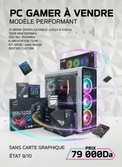 🔥 Processeur Intel Core i5-9600K overclockable jusqu'à 4.6GHz 💾 16GB RAM DDR4 3000MHz pour une fluidité optimale ⚡ Carte mère ASUS ROG STRIX H370-F Gaming, robuste et performante