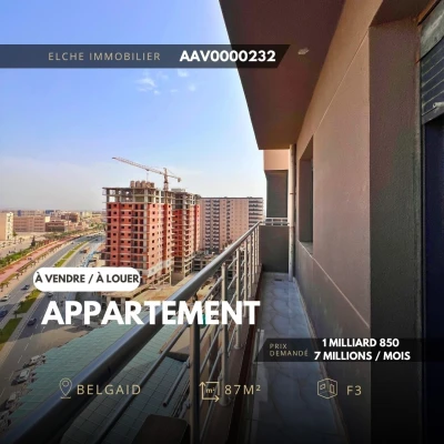 🔶 Réf : AAV0000232 🏡 À VENDRE ET À LOUER – Appartement F3 📍 Situé à Belgaïd – Oran, dans une résidence sécurisée et bien entretenue, dotée d’un ascenseur, d’un a