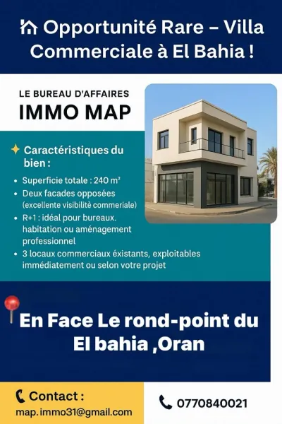 🏡 Le bureau d’affaires immo map vous propose Une Villa Commerciale d’Exception située dans un endroit très commercial à Oran 🔥 📍 Localisation : Delmonte (Castor), Oran – e