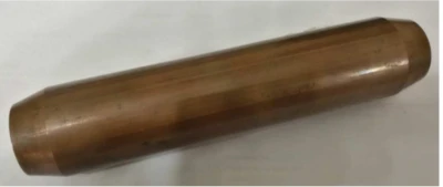 Manchon de jonction cuivre à sertir - en cuivre électrolytique, - pour jonction BT ou HTA, de câble à âme en cuivre suivant NF C 32013, - forme cônique des extrémités évitant toute