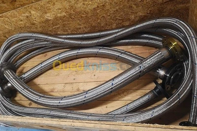 Confection de flexible pour transport de bitume (Goudron) et tous genres de émulsions Tube Int = Onduleux Inox AISI 321 Revêtement Ext = Tresse Inox Température de service = jusqu'