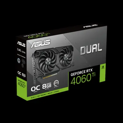 DUAL-RTX4060TI-O8G-EVO Moteur graphique NVIDIA® GeForce RTX™ 4060 Ti AI Performance 357 Bus standard PCI Express 4.0 OpenGL OpenGL®4.6 Mémoire vidéo 8 Go GDDR6 Horloge moteur OC mode :