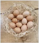 Oeufs bio disponible. En petite quantité. Les poules élevées au pâturage se déplacent librement dans le jardin pendant la journée.