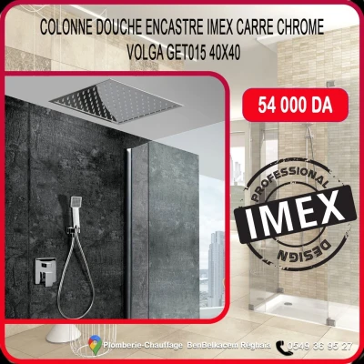Série: Volga Référence: GET015 Pulvérisateur en acier inoxydable Carré 40X40cm, extra plat, chromé et anti-lime system. Poignée de douche carrée.