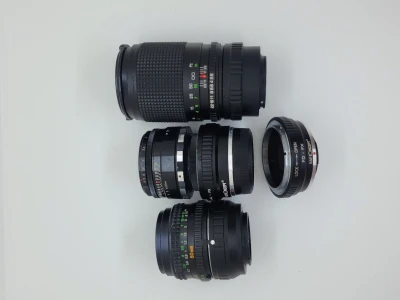 Lot complet a 35 000 DA Monture Fujifilm X Minolta 50mm 1.7 + bague M42 Helios 135mm 2.8 + Bague m42 Helios 58 mm F/2,0 + Bague M42 Bague K&F concept FD-FX