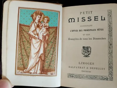 Petit Missel, Contenant: -- l'Office des Principales Fêtes, -- Et les Évangiles de tous les dimanches, Avec: Table du temps et des fêtes mobiles (Année 1900 à 1910) Ouvrage rare