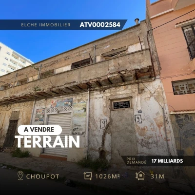 Réf : ATV0002584 🏡 À VENDRE : Un terrain situé choupot , ORAN. •🔺 Superficie: 1026 M² avec façade 31 m. •🔺Documents : L'acte de propriété disponible et livret foncier .