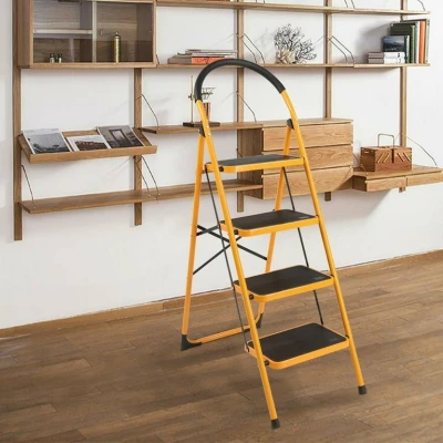 سلم بـ 4 درجات مقبض مغطى درجات عريضة ومضادة للانزلاق (مقاس الدرجة: 38×26 سم) أرجل مقاومة �