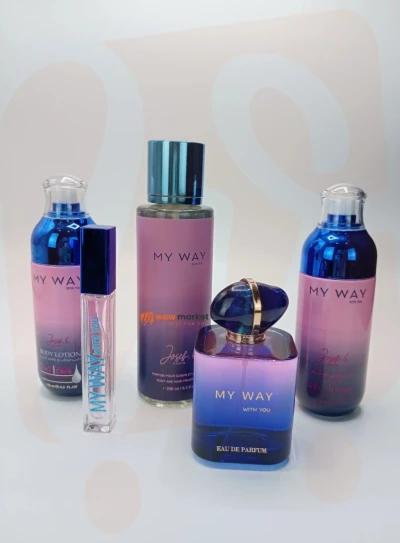 PACK MY WAY 5 PRODUITS 1. Parfum : Description: A highly concentrated fragrance with a long-lasting scent, usually with a higher percentage of fragrance oils compared to eau de toilette. Pu