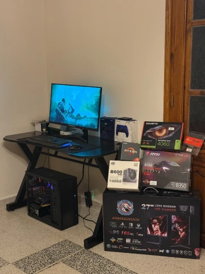 Pc Gamer Compler Menharak Tal3aab Carte Graphique Rtx 4060 GIGABYTE Avec La Boite Carte Mére B350 GAMING PRO CARBON RGB 4 Slot De Ram Avec La Boite Processeur Ryzen 5 1600 3.6 Ghz Avec L