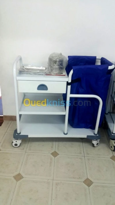-Chariot de ménage petit et grand modèle avec accessoires. -Chariot de Blanchisserie . -Chariot pour linge . -Chariot multi usage . -Chariot porte sac DASRI simple et double.