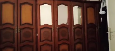 Armoire 7 porte bois rouge avec coiffeuse et 2 tables de nuit en bon etat tres bon prix liquidation demenagement , lieu reghaia