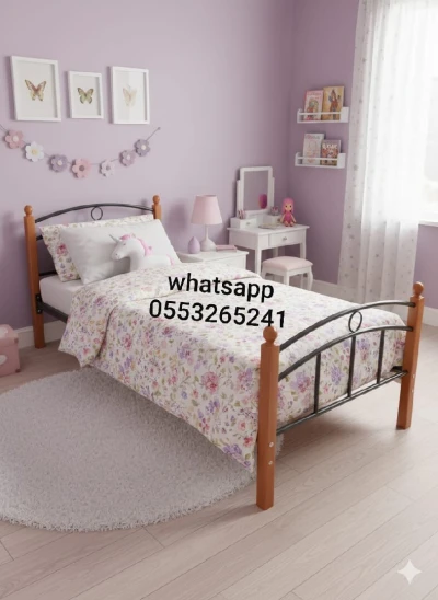 Chambre d’enfant très bonne finition très solide en bois rouge : Lit coffret 29000 Da Armoire 43000 Da Table de nuit 8000 da