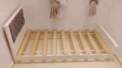 Lit capitonné en bois hêtre coffret + matelas orthopédique excellente qualité 1m 10 cm
