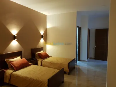 a louer pour les vacances ou courtes durees dans maison individuelle climatisee 4 pieces entierement equipees avec des lits et des meubles de rangement des banquettes des fauteuils des table