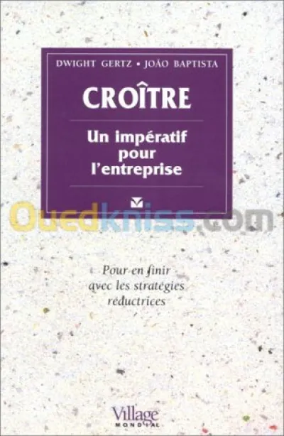 Titre : Croitre: un impératif pour l'entreprise Auteur : D.Gertz/J.Baptista Editeur : Village mondial Année : 1996 Théme : Economie Et Sciences De Gestion Sous-théme : Management ISBN :