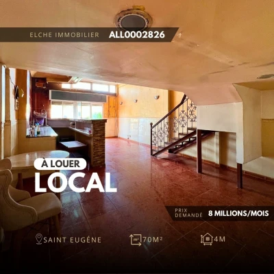 🔶REF : ALL0002826 🏡 À LOUER : Un local situé à saint-eugéne, ORAN. •🔺 Superficie : 70 m² avec une façade de 4m 🔺Équipements : électricité, eau, compteur individuel, ba