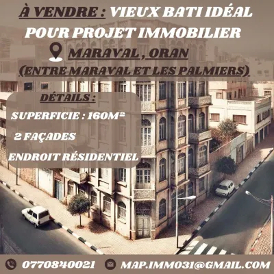 🏡 À VENDRE : Vieux bâti idéal pour projet immobilier à Maraval, Oran ! Entre ( MARAVAL ET LES PALMIES ) 🔑 Le bureau d’affaires IMMO MAP vous propose une opportunité unique d’