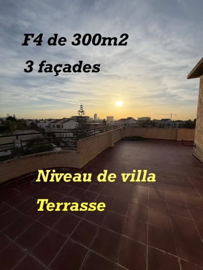 Agence immobilière met en Location un appartement F4 niveau de villa avec une belle terrasse 3 façades sans vis à vis superficie totale 300m2 , 120m2 habitables, à Chéraga pas loin de E