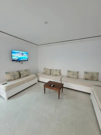 Appartement propre et lumineux pour location journalière.. Accès direct à l'autoroute est-ouest, Eau froide et chaude. Eau de ville tous les jours. Citerne de 500 litres Dispose de tout