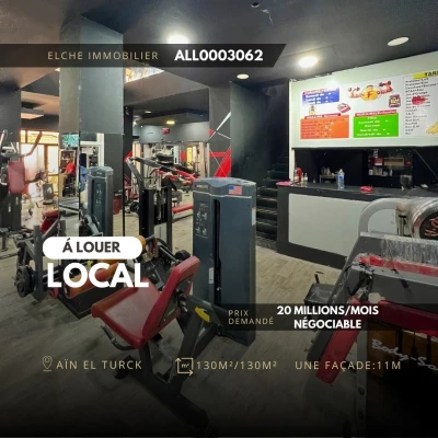 Réf : ALL0003062 À Louer : un local commercial à Aïn El Turck, Oran Superficie totale : 260 m² (RDC 130m² + 1er Étage 130m²) Façade : 11 mètres Équipements : Eau, électricité,