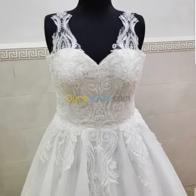 Je mets en vente ou location une robe blanche toute neuve ..faite en dentelle et tulle perlé ..se porte en corsé ou en petite manchette .