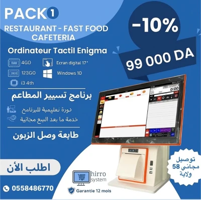 Bonjour et Bienvenue, TIFAW TECH vous offre des prix exclusifs, trois pack pour votre fast Food/ resto / pâtisserie et cafeteria…. avec Garantie matérielle d'un an et garantie logiciell