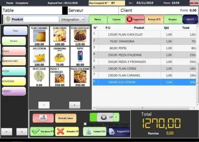 Logiciel de : Gestion de point de vente, Supérette, Pizzeria, Restaurant, Cosmétique......etc Que fait le Logiciel: -Vente des produits via son code à barre ou nom du produit. -Multi-