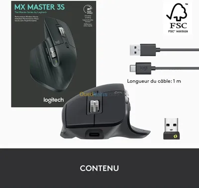 ✅INFORMATIONS GÉNÉRALES : ✅Désignation : Logitech MX Master 3S ✅Marque : Logitech ✅Modèle : 910-006559 ✅INTERFACE : Sans-fil : Oui Technologie de connexion de la souris : RF (