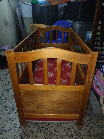 Berceau à vendre Longueur 1,40m Largeur 0.64m Hauteur 0.75m Plus un matelas orthopédique de 20cm d,épaisseur