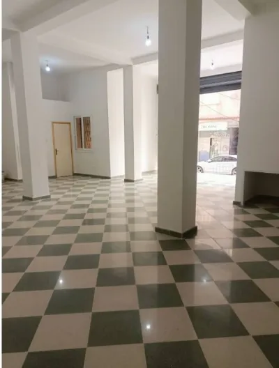 Loue un local commercial à Bouchaoui Centre ville au bord de la route électricité l'eau toilette climatisation.