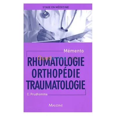 Titre : Mémento Rhumatologie Orthopédie Traumatologie Auteur : C.Prudhomme Editeur : Maloine Année : 2008 Théme : Médecine Et Paramédical Sous-théme : Orthopédie ISBN : 9782224030407