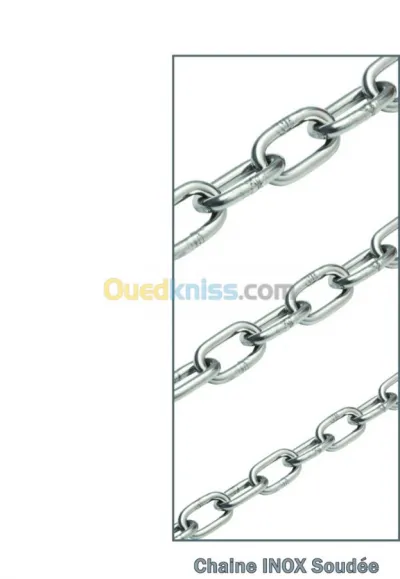 Actuellement disponible, Chaine en INOX A2 (304) aux dimensions suivantes : * M06 * M08 * M10 * M12 * M14 Chaine en acier zingué : * M2.5 / 3 / 4
