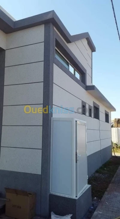 Salam:On vous propose un revêtement de façade extérieur au mortier Mono Couche imperméable efficace pour les intempéries est fiable et rapide avec une machine de projection travail gara