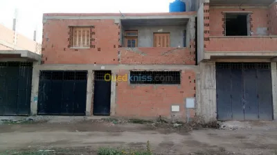 R+1 composer de 05 garages de 13m de longueur et un f 5 au premier etage bien fini avec deus salles de bain 04 chambres un grand salon une salle a manger une grande cuisine un hall( supe