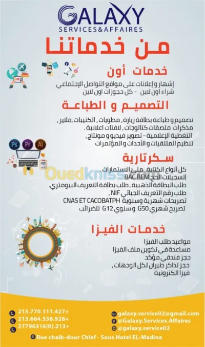 مكتب #galaxy يوفر لكم كل اعمال الاشهار والاعلانات للطباعة و الويب . Agence de communication & publicité #GALAXY_services vous propose ce