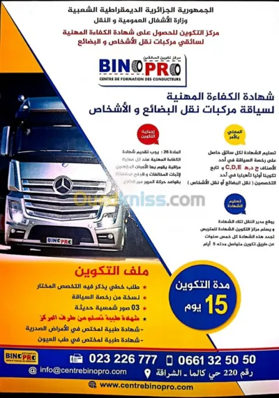 تكوين الساءقين في شهادة الكفاءة المهنية لنقل الأشخاص و البضائع و المواد الخطرة. Formation des chauffeurs au brevet professi