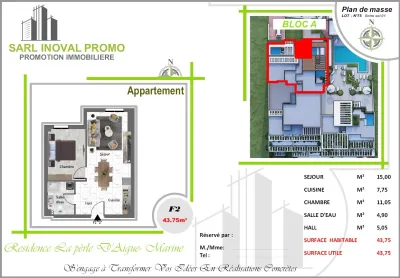 🏡 À vendre – Appartements F3 avec vue mer et piscine Résidence La Perle Aigue-Marine a seulement 350 mètres d'une belle plage de sable Par SARL IBOVAL PROMO 📍 Emplacement : Aït M